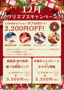 →大人気ホットストーンやデトックスにおすすめパイラなどの冬に嬉しいオプションたちがとってもお得に受けられるチャンス☆