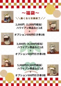 2,000円(3,000円相当) ハワイアン商品2点+オプション500円引き券1枚