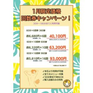 ハワイアンフォレストSpa大宮店です!ただいま当店では、冬の回数券キャンペーン〈第三弾〉!!を開催しております♪
