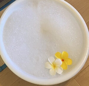 足湯に入れるMOKUPUAのボディウォッシュもハワイで作られている製品でとてもキメの細かい泡立ちで泡に触れた瞬間に柔らかさに包まれて癒されます。肌の保湿にも優れているので乾燥が気になる方にもおすすめです♪