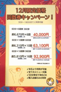 11月から販売中の冬の回数券ですが、12月も限定価格で販売いたします♪