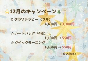 忙しくなる年末前に、お身体もお肌も気持ちよく整えていただければ嬉しいです。